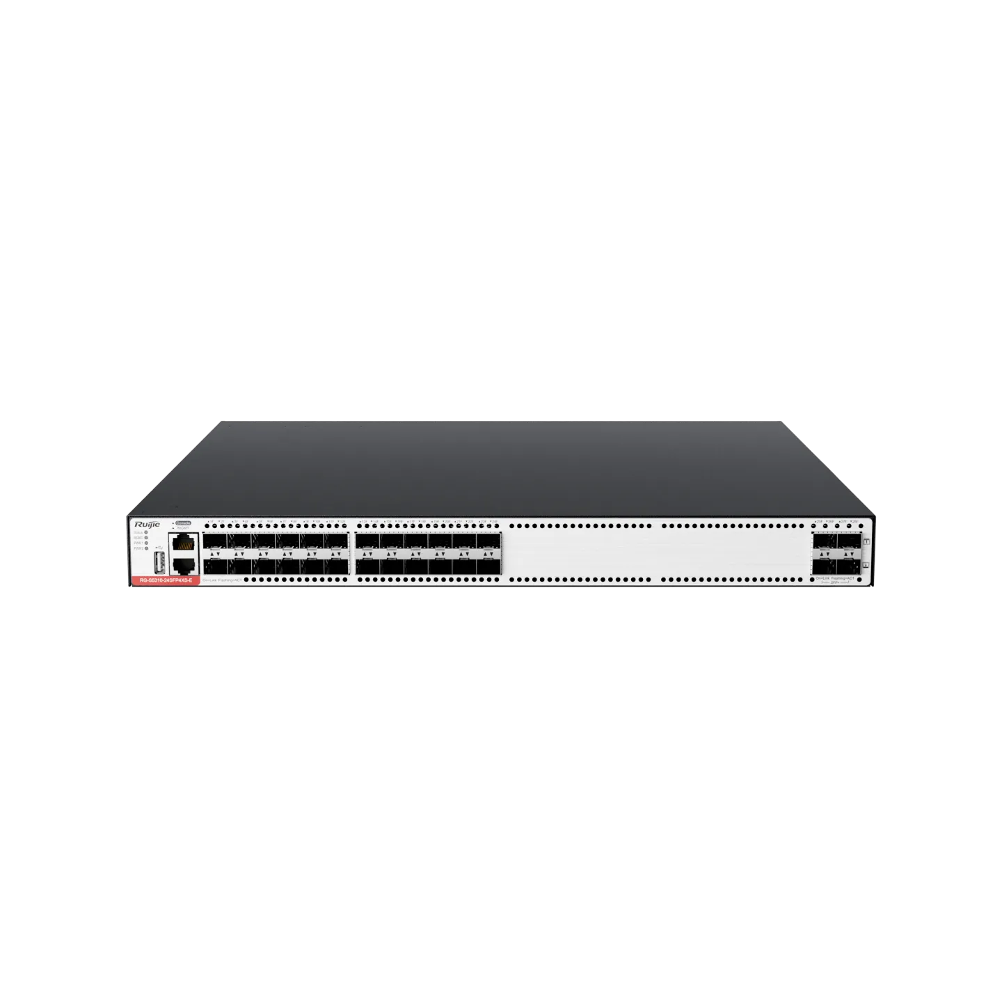 RG-S5310-24SFP4XS-E adalah switch agregasi full-fiber yang dirancang untuk menghubungkan berbagai switch akses di gedung atau area yang berjauhan. Dengan 24 port SFP dan 4 uplink 10G SFP+, switch ini memberikan transmisi data berbasis cahaya yang stabil dan bebas gangguan interferensi listrik.