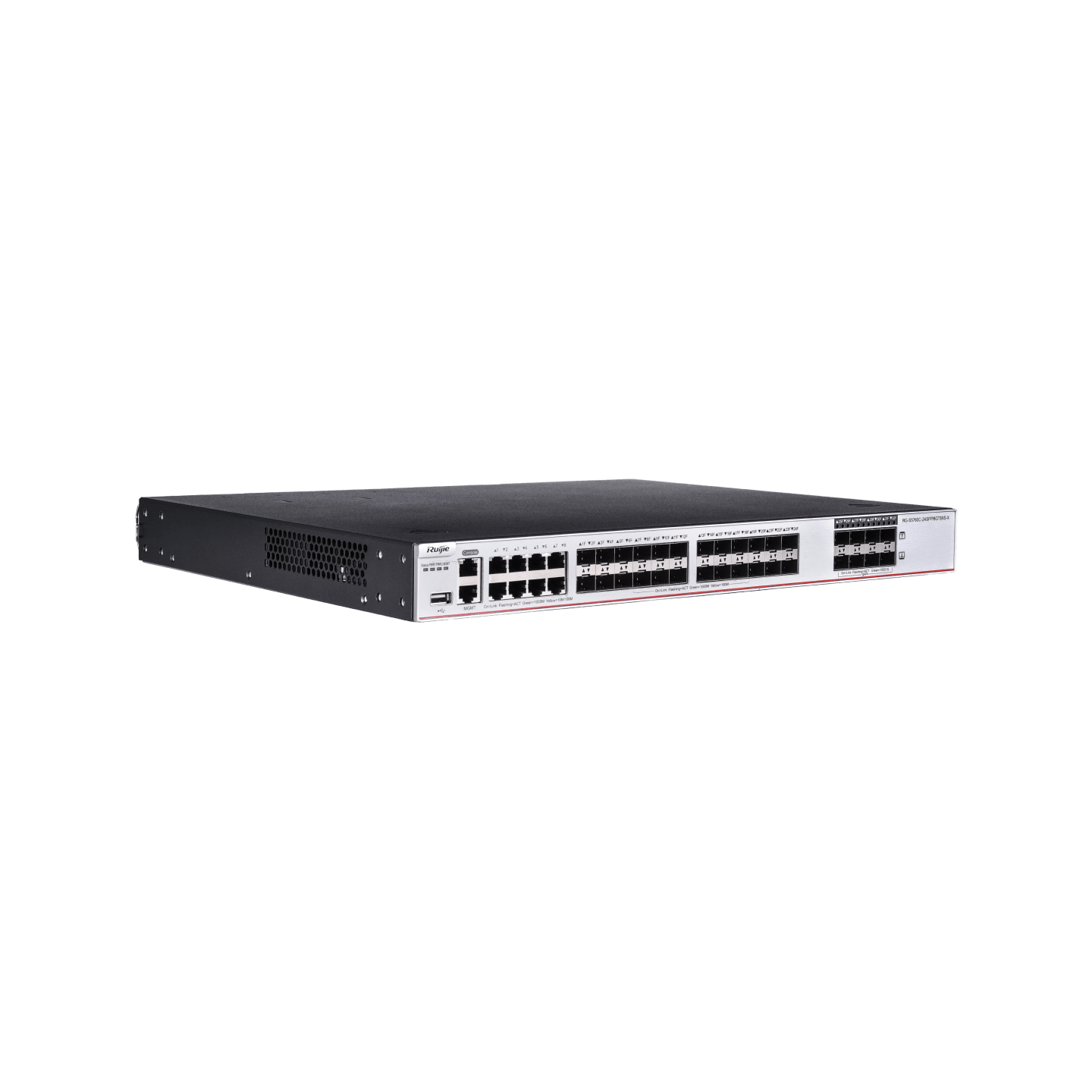 - Dominasi Port Fiber Optik: 24 Port SFP memberikan fleksibilitas luar biasa untuk menghubungkan berbagai switch akses di lokasi berbeda melalui infrastruktur fiber optik.