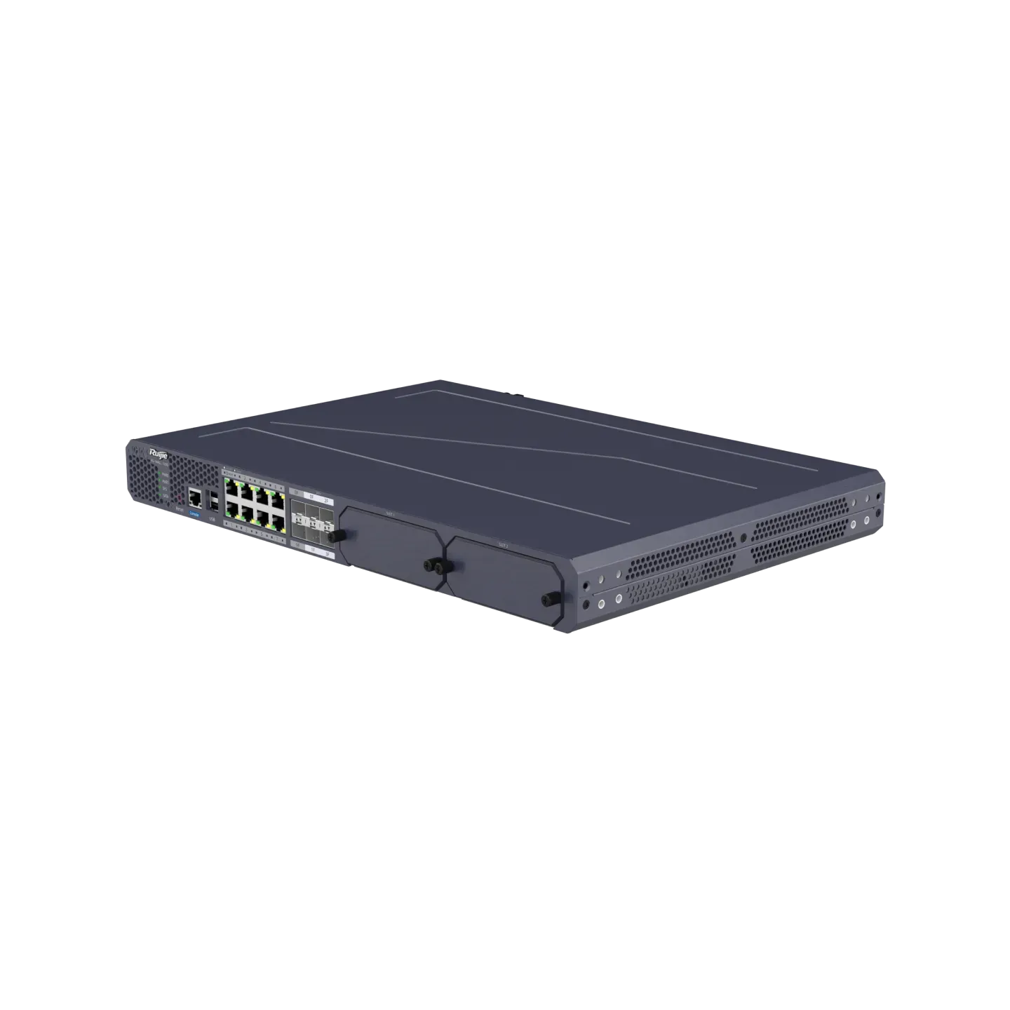 Ruijie RG-WALL 1600-Z5100-S is a next-generation firewall with fixed eight 1GE ports, two 1GE SFP ports, and four 10GE SFP+ ports. It is 1 RU high and equipped with one power module for factory delivery. It supports expansion of hot-swappable power modules for power redundancy and expansion of 1 TB hard disk drive (HDD). The basic throughput performance is 3 Gbps by default, which can be increased to 10 Gbps by adding performance licenses (RG-WALL 1600-Z5100-S-1G-LIC).